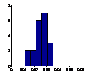圖6.2失效概率對x1均值的可靠性試驗(yàn)靈敏度估計(jì)值方差的直方圖 |