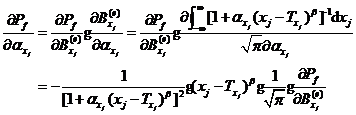 根據(jù)復(fù)合函數(shù)求導(dǎo)法則容易得到模糊隨機失效概率對基本變量隸屬函數(shù)分布參數(shù)的可靠性試驗靈敏度如式、所示。